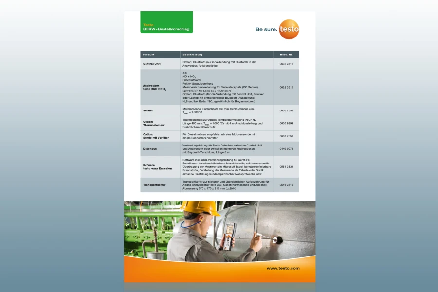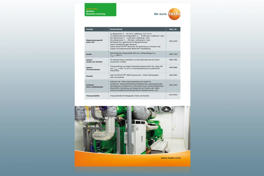 - Оптимизированная энергоэффективность благодаря точной измерительной технологии: использование высокоточных измерительных приборов, таких как анализатор выхлопных газов Testo 350, позволяет сократить расход топлива системой до 10%. Это приводит не только к снижению эксплуатационных расходов, но и к более эффективному использованию энергии.